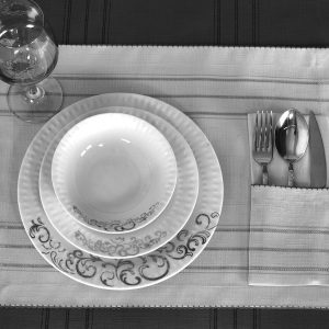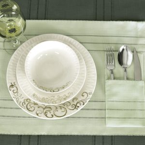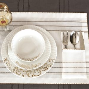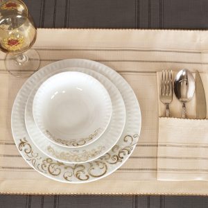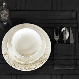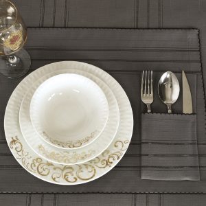 طقم قواعد أطباق + جيب منفصل لأدوات المائدة – ٢٤ قطعة يكفي ل ١٢ شخص – يمكن استعماله يومياً – مضادة للبقع وسهل بالتنظيف