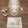 طقم قواعد أطباق – يكفي ل ١٢ شخص – مرفق بجيب لأدوات المائدة – قماش اوف وايت – دانتيل بني فاتح