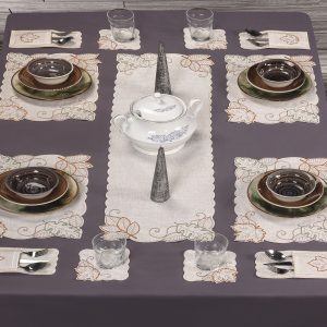طقم مفارش سفرة مُطرزة – تصميم خاص – ل ٨ أشخاص ٢٥ قطعة – قماش معالج ضد البقع