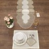 طقم قواعد أطباق – يكفي ل ١٢ شخص – مرفق بجيب لأدوات المائدة – قماش اوف وايت – دانتيل بني فاتح